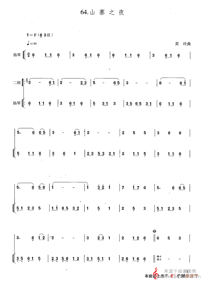 山寨之夜简谱(山寨之夜 扬琴伴奏简谱)
