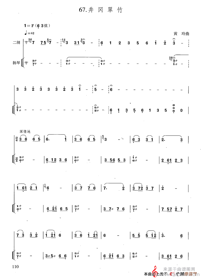 当前位置:曲谱图网器乐曲谱胡琴井冈翠竹简谱(井冈翠竹扬琴演奏曲谱)