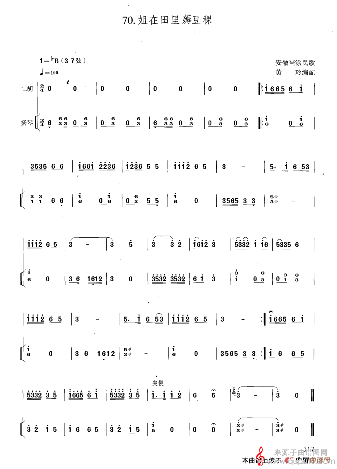 姐在田里薅豆稞民歌曲谱(姐在田里薅豆稞扬琴伴奏曲谱)