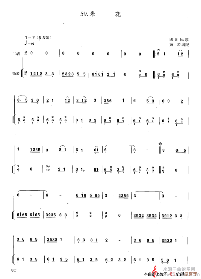 曲谱图网为您提供采花民歌简谱(采花扬琴演奏曲谱)找谱子,就上曲谱图网。