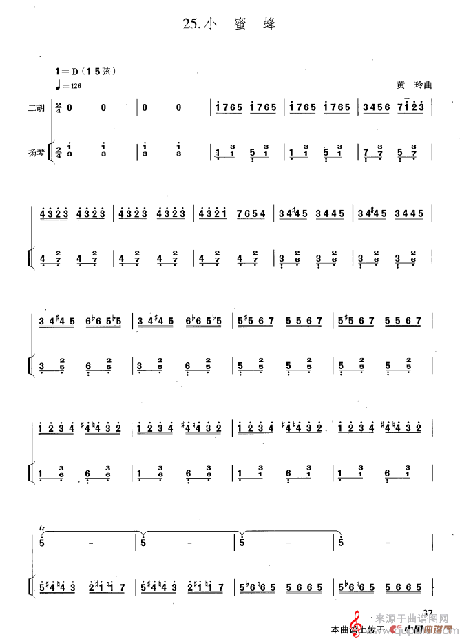 小蜜蜂简谱(小蜜蜂扬琴伴奏曲谱、黄玲编配版)