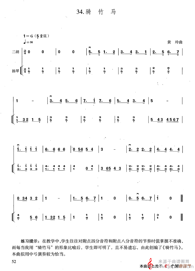 骑竹马简谱(骑竹马扬琴伴奏曲谱、黄玲编配版)