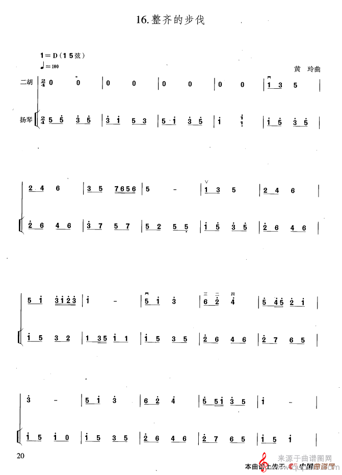 当前位置:曲谱图网器乐曲谱胡琴整齐的步伐简谱(整齐的步伐扬琴伴奏简谱)