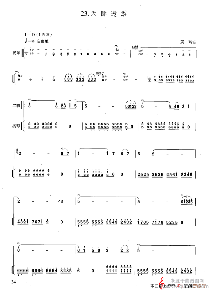 天际遨游简谱(天际遨游扬琴演奏简谱)
