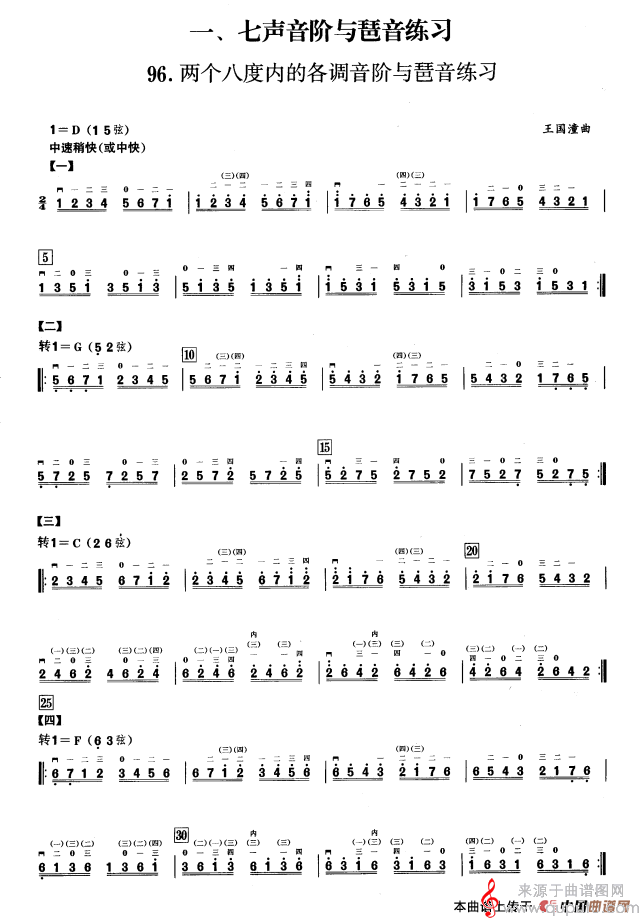 曲谱图网为您提供一、七声音阶与琶音练习简谱(一、七声音阶与琶音练习 二胡音阶练习)找谱子,就上曲谱图网。