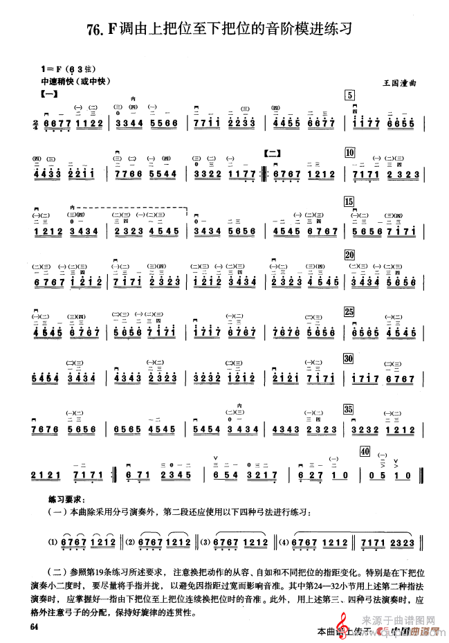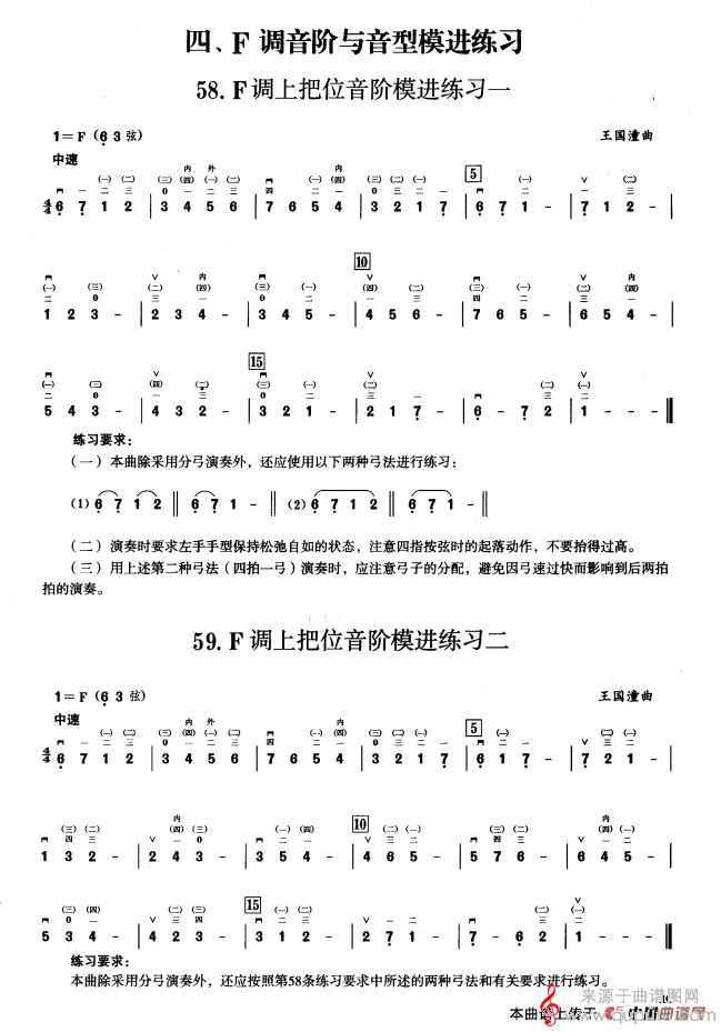 四、F调音阶与音型模进练习简谱(四、F调音阶与音型模进练习 二胡音阶练习 示范曲)