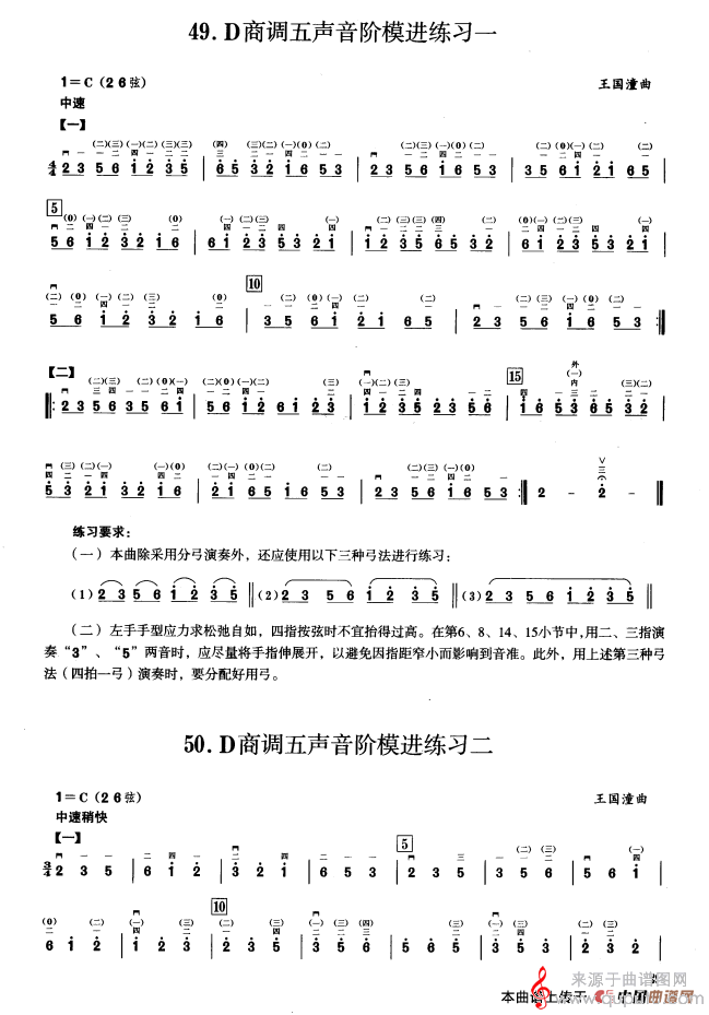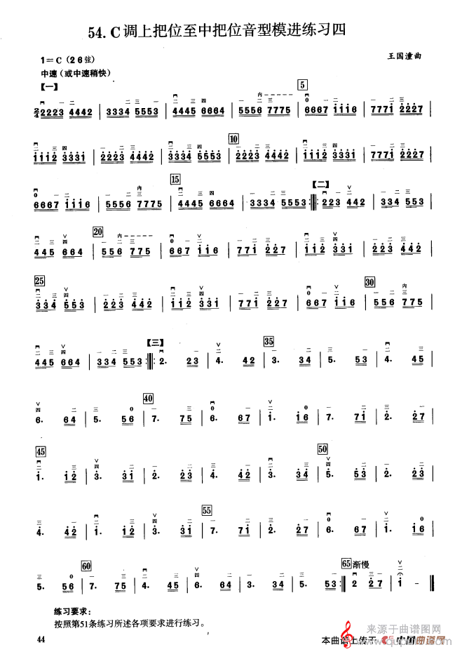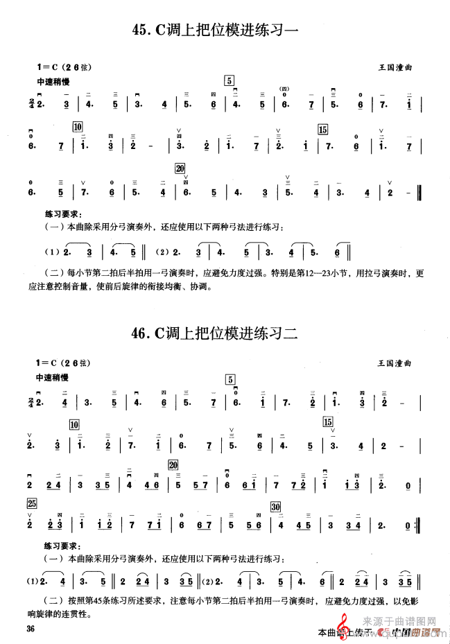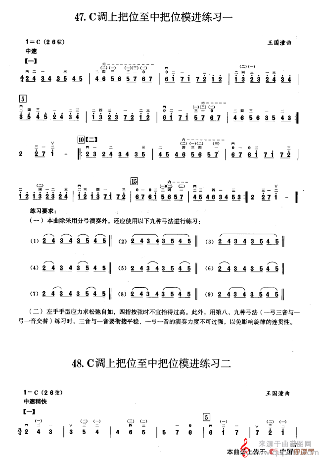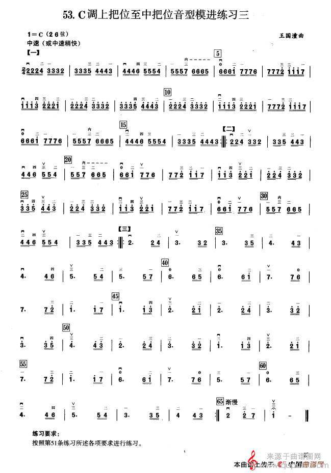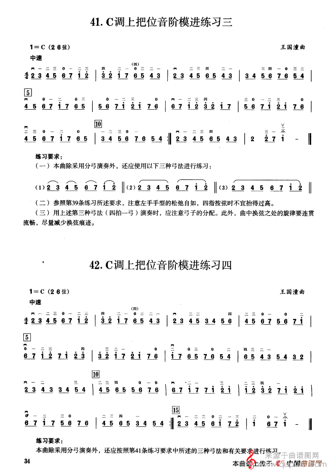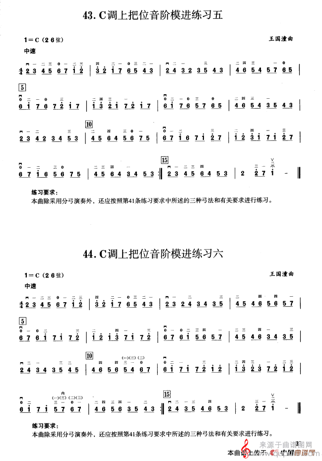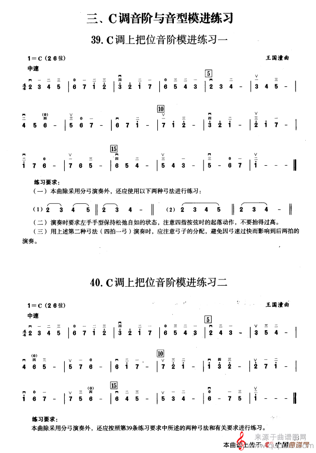 三、C调音阶与音型模进练习简谱(三、C调音阶与音型模进练习 二胡音阶练习 示范曲)