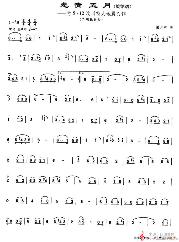曲谱图网为您提供悲情五月歌曲曲谱(悲情五月二胡独奏曲曲谱)找谱子,就上曲谱图网。