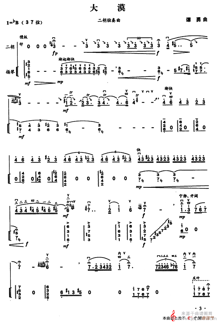 曲谱图网为您提供大漠歌曲简谱(大漠二胡独奏曲简谱)找谱子,就上曲谱图网。