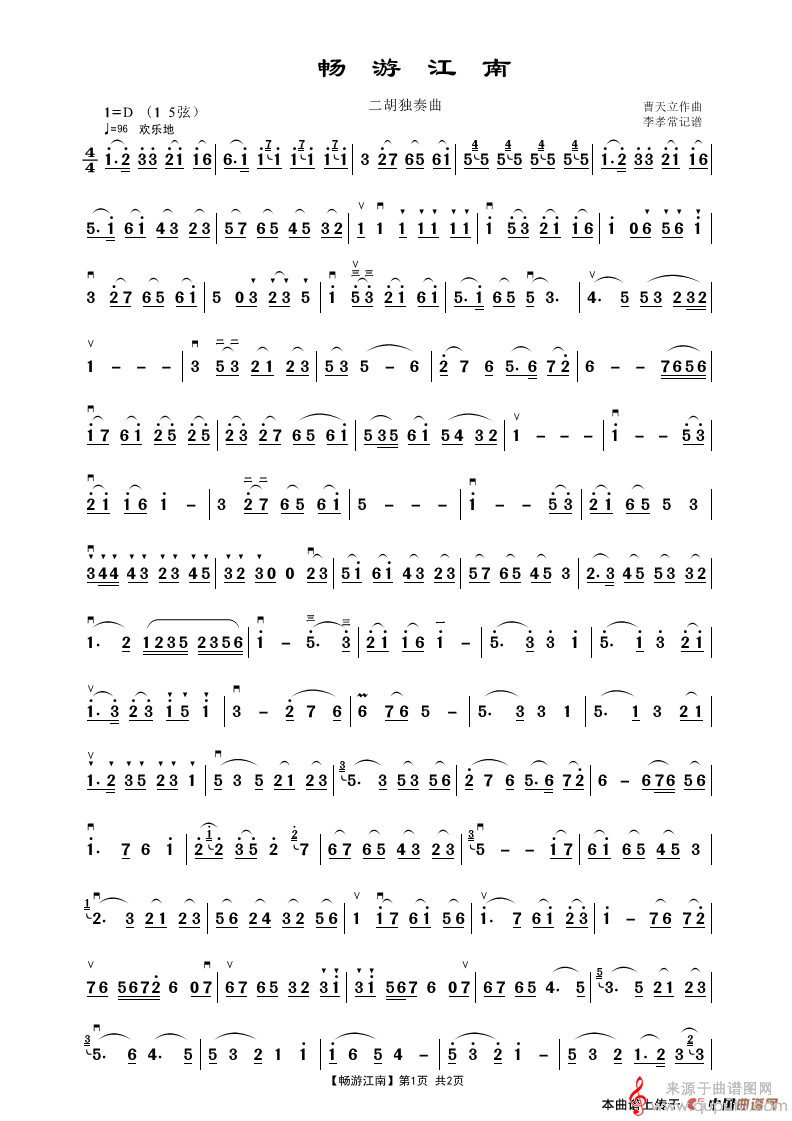 曲谱图网为您提供畅游江南简谱(畅游江南二胡齐奏或独奏曲曲谱)找谱子,就上曲谱图网。