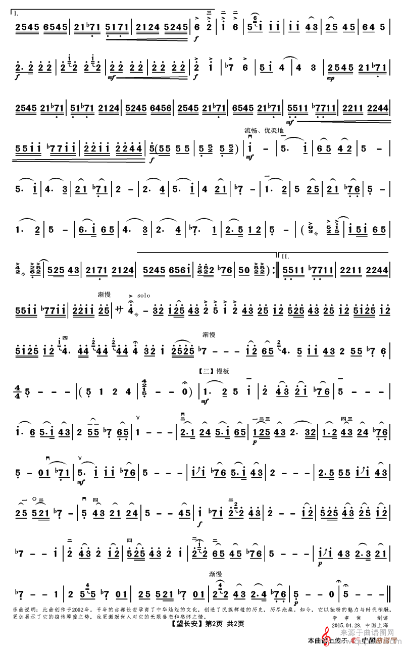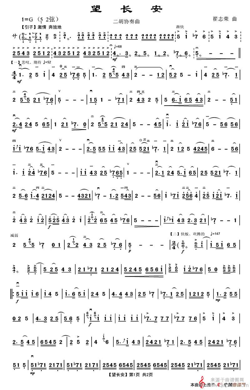 曲谱图网为您提供望长安曲谱(望长安二胡协奏曲曲谱)找谱子,就上曲谱图网。