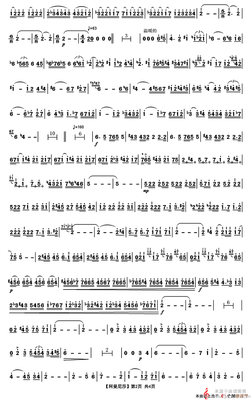 曲谱图网为您提供阿曼尼莎简谱(阿曼尼莎二胡协奏简谱)找谱子,就上曲谱图网。