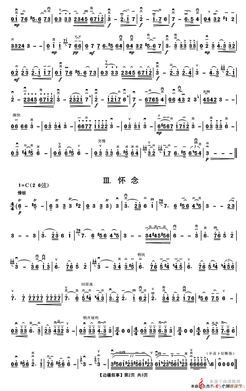 边疆叙事简谱(边疆叙事二胡协奏曲简谱)