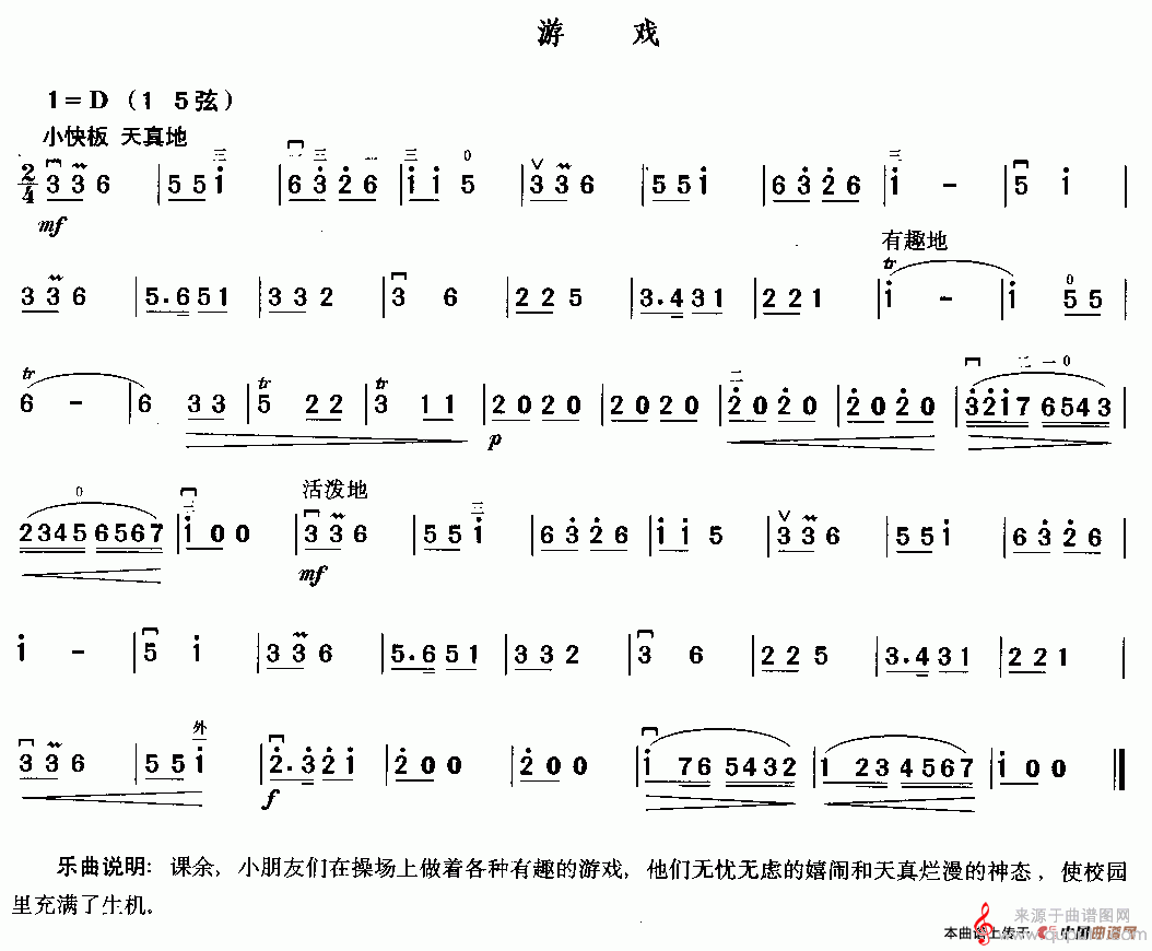 曲谱图网为您提供游戏歌曲简谱(游戏二胡独奏简谱)找谱子,就上曲谱图网。