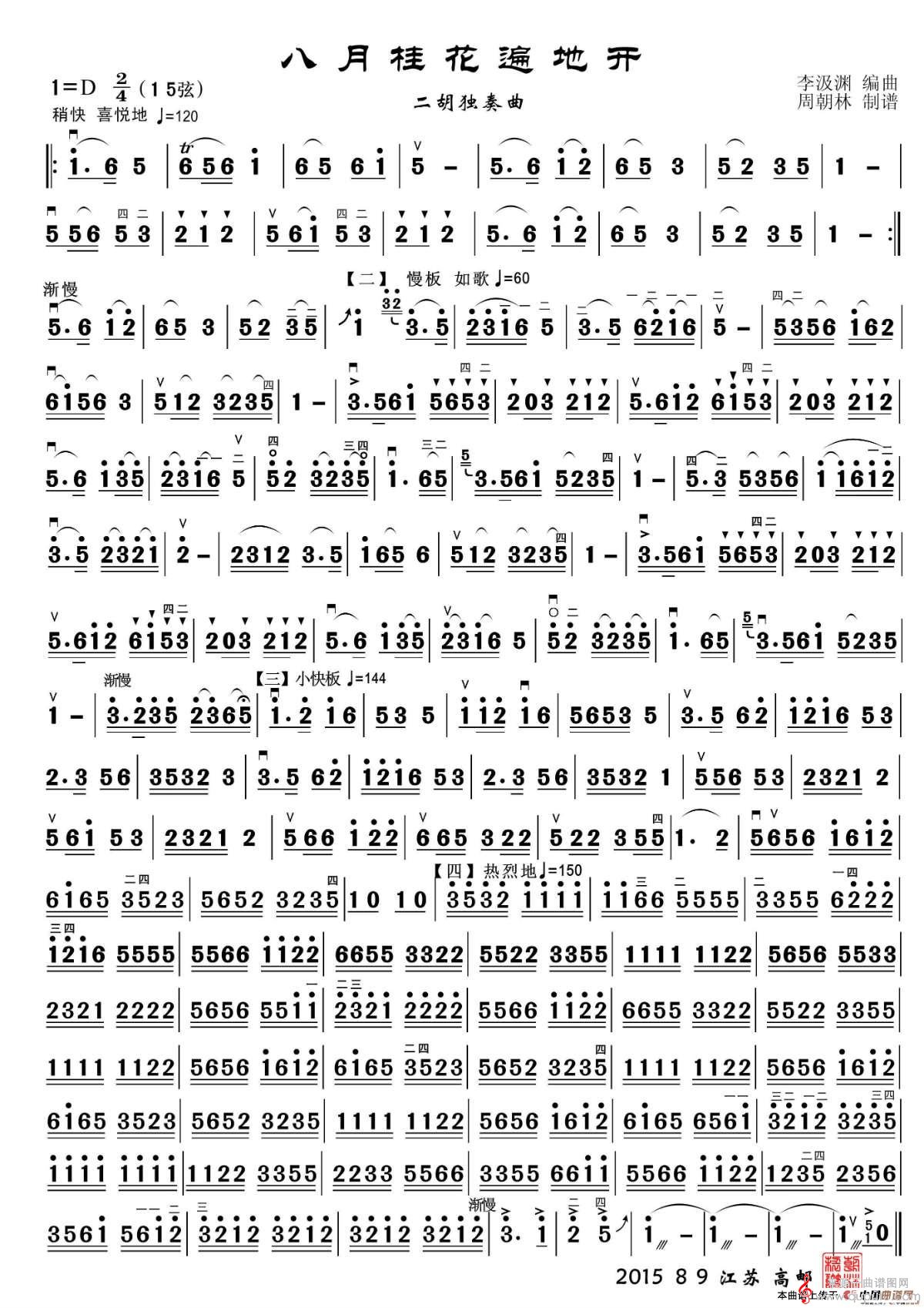 曲谱图网为您提供八月桂花遍地开曲谱(八月桂花遍地开二胡独奏简谱)找谱子,就上曲谱图网。