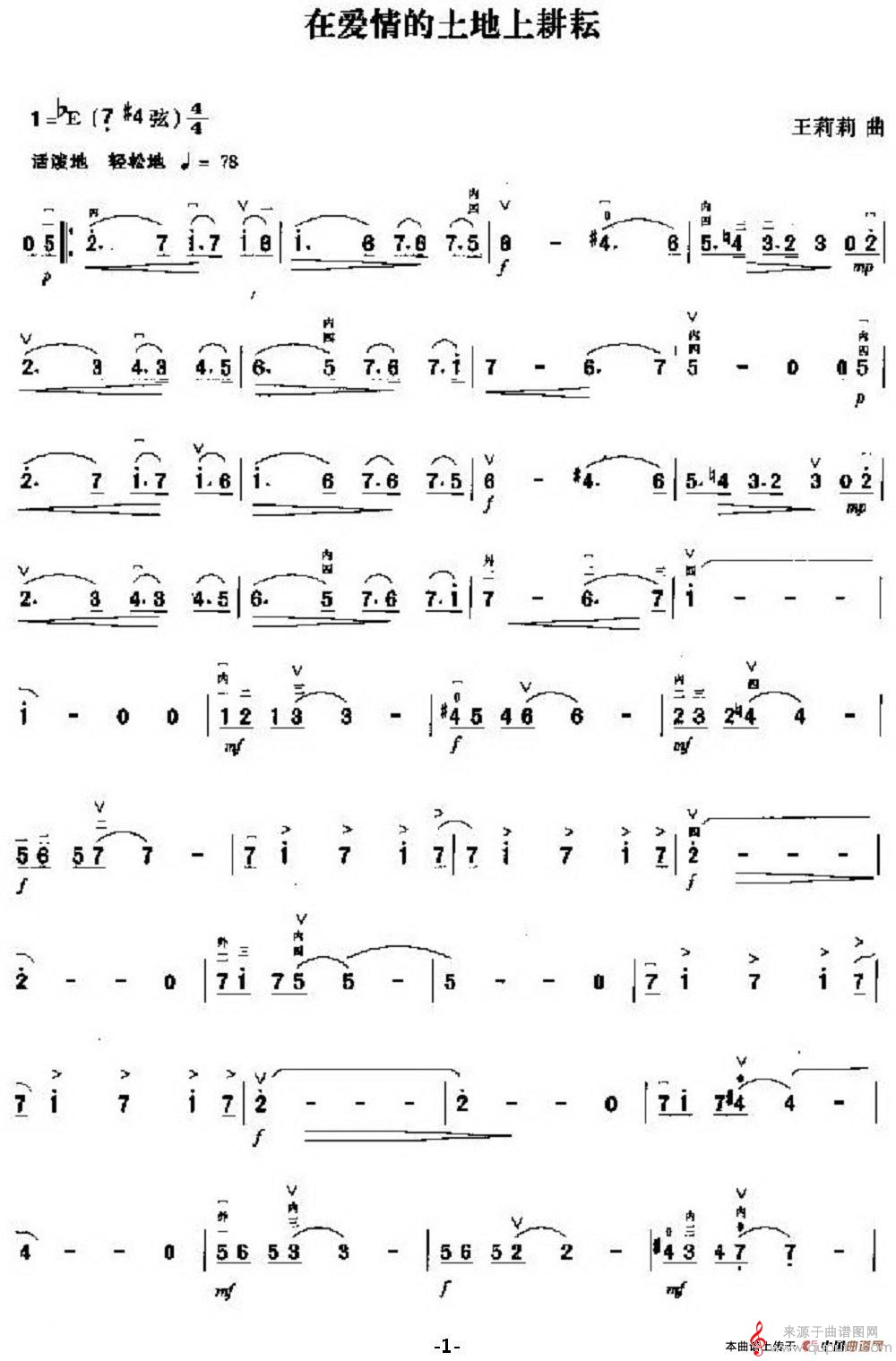 曲谱图网为您提供在爱情的土地上耕耘曲谱(在爱情的土地上耕耘二胡演奏简谱)找谱子,就上曲谱图网。