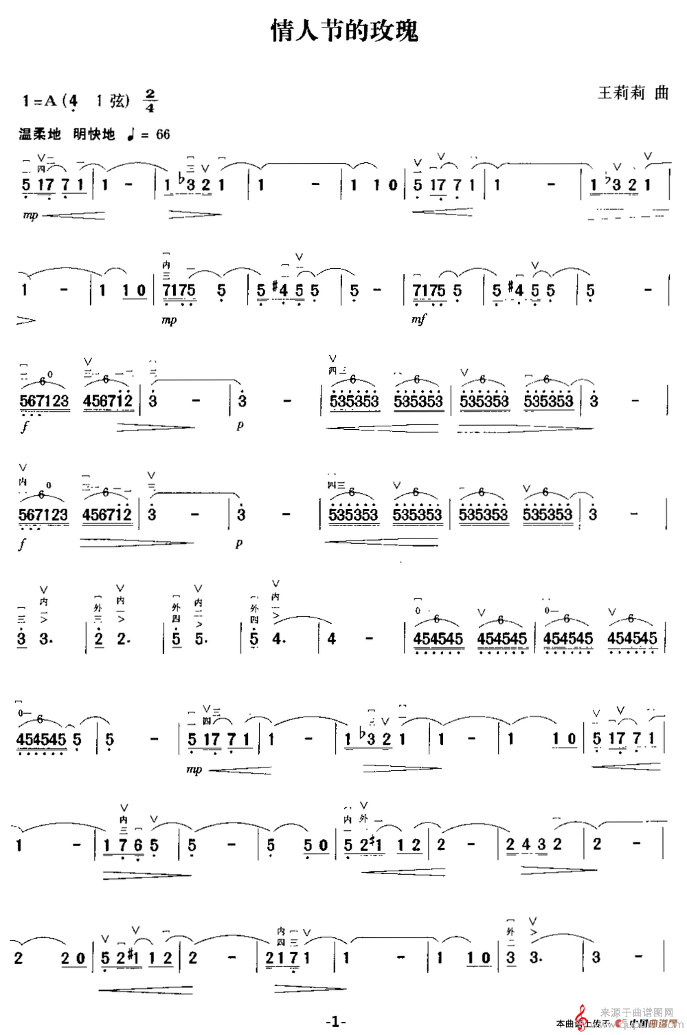 情人节的玫瑰曲谱(情人节的玫瑰二胡独奏曲曲谱)