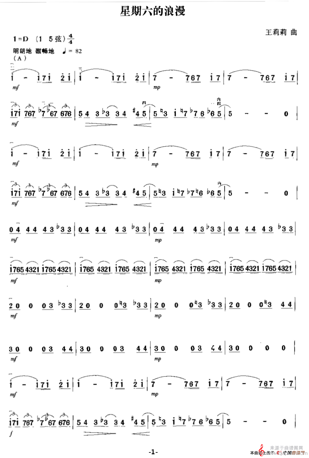 星期六的浪漫简谱(星期六的浪漫二胡演奏简谱)