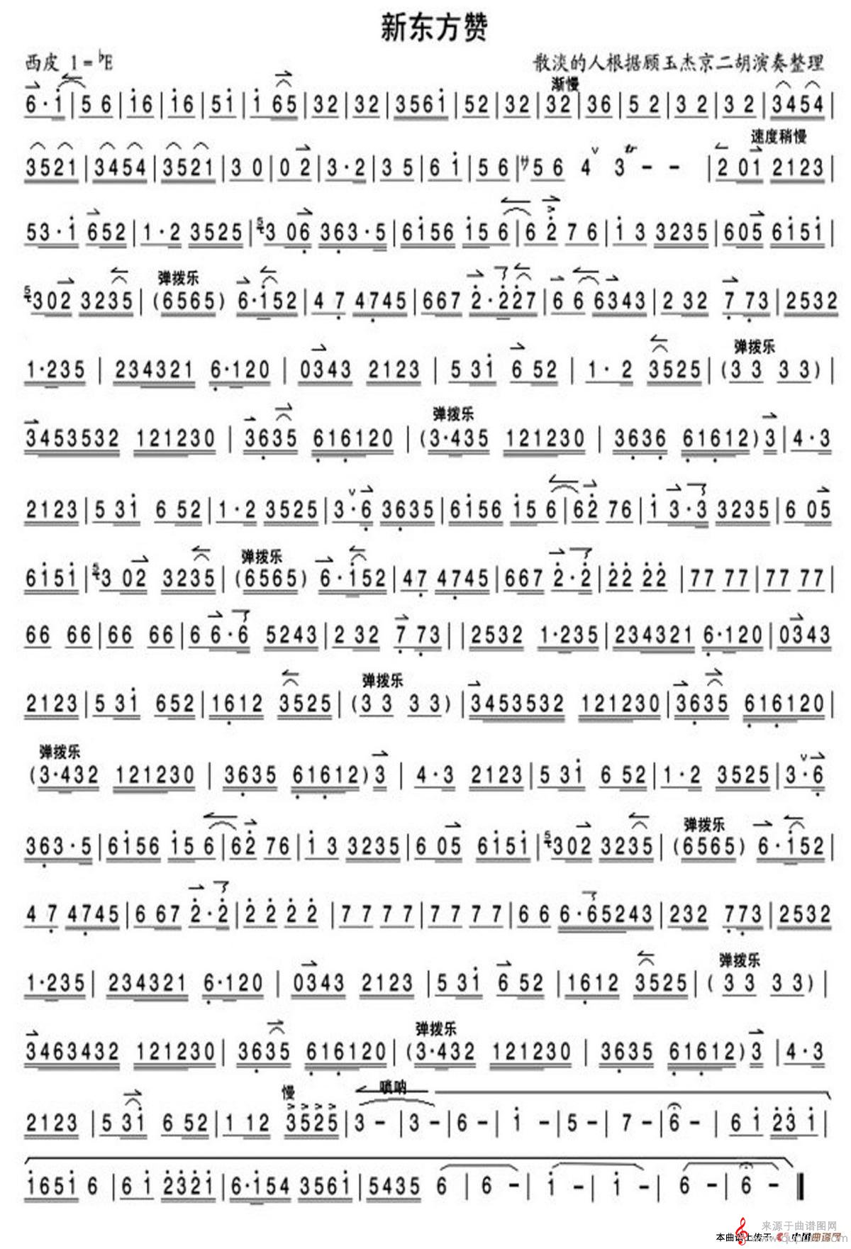 新东方赞简谱(京剧曲牌 二胡独奏曲曲谱)