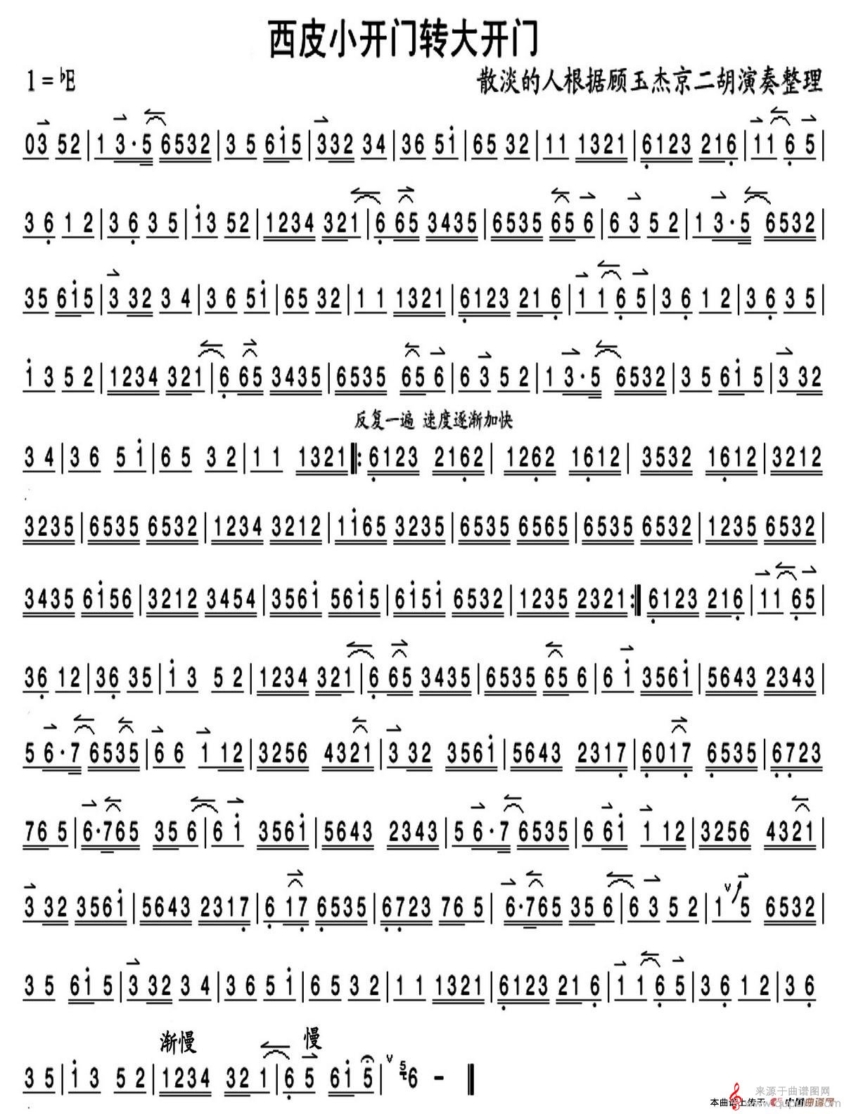 曲谱图网为您提供西皮小开门转大开门简谱(西皮小开门转大开门京剧曲牌 二胡独奏简谱)找谱子,就上曲谱图网。