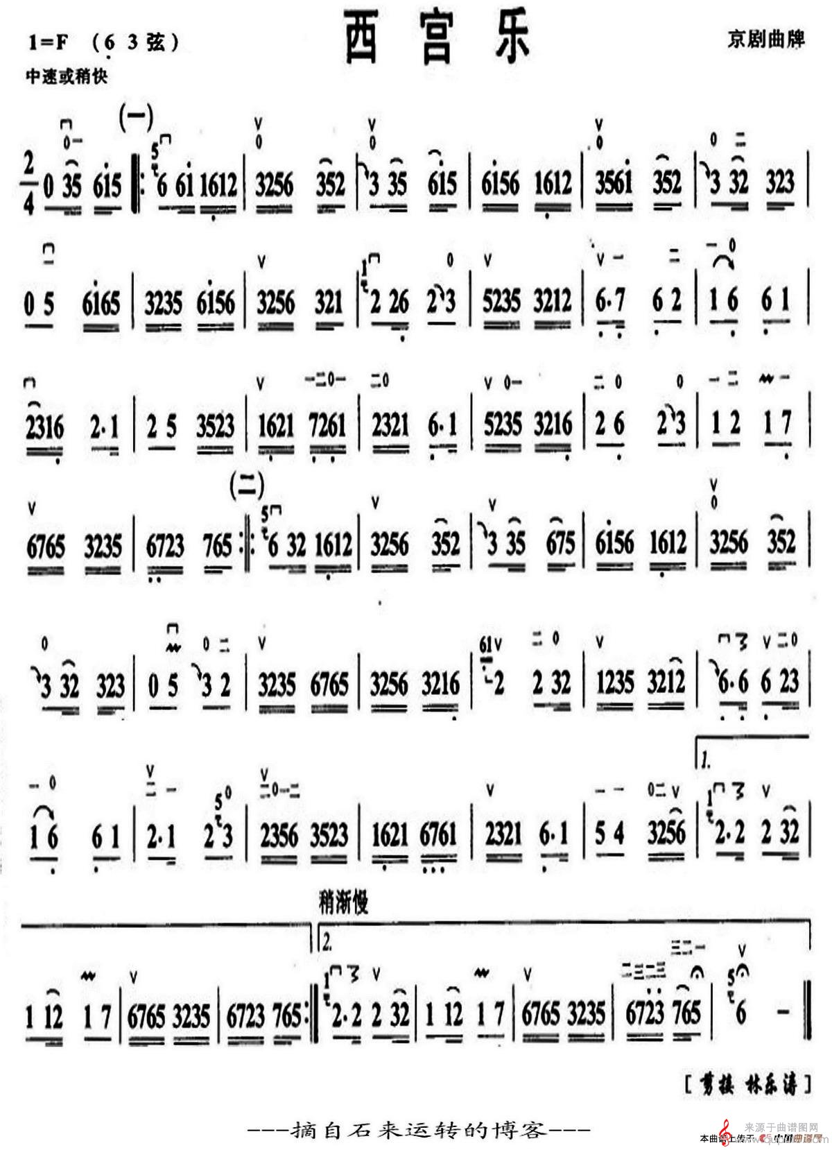 西宫乐简谱(西宫乐京剧曲牌京胡演奏曲谱)