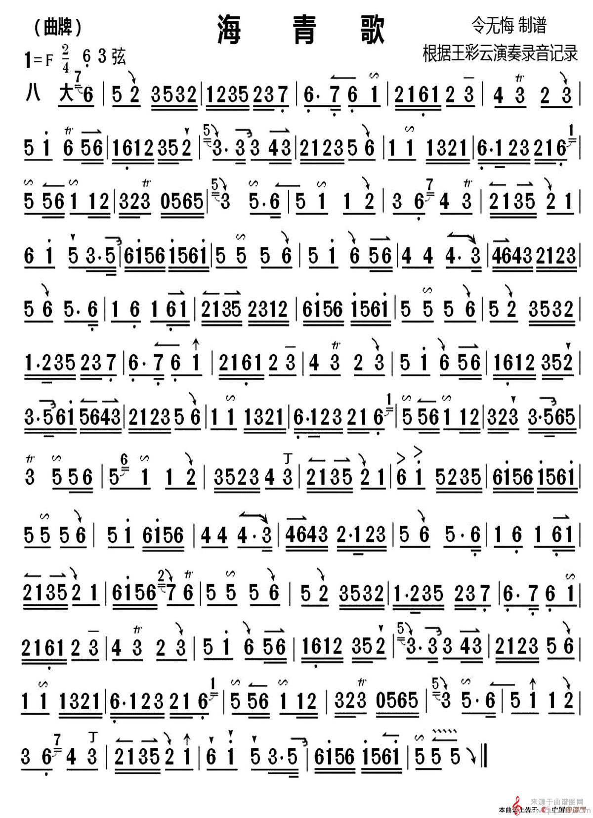 曲谱图网为您提供海青歌曲谱(海青歌京胡独奏简谱)找谱子,就上曲谱图网。