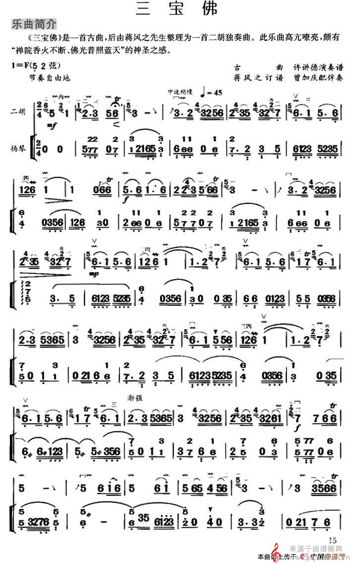 三宝佛曲谱(三宝佛二胡独奏扬琴伴奏简谱)