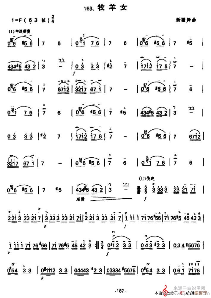 曲谱图网为您提供牧羊女舞曲曲谱(牧羊女二胡独奏简谱)找谱子,就上曲谱图网。
