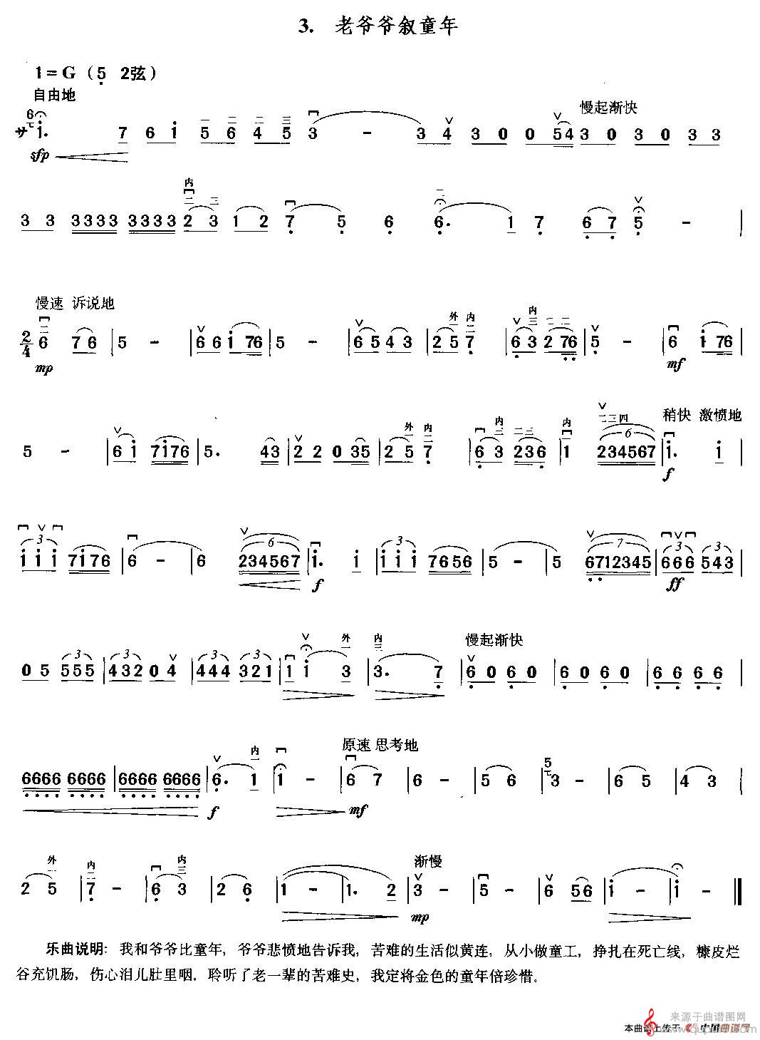 曲谱图网为您提供老爷爷叙童年儿童乐曲简谱(老爷爷叙童年二胡演奏简谱)找谱子,就上曲谱图网。