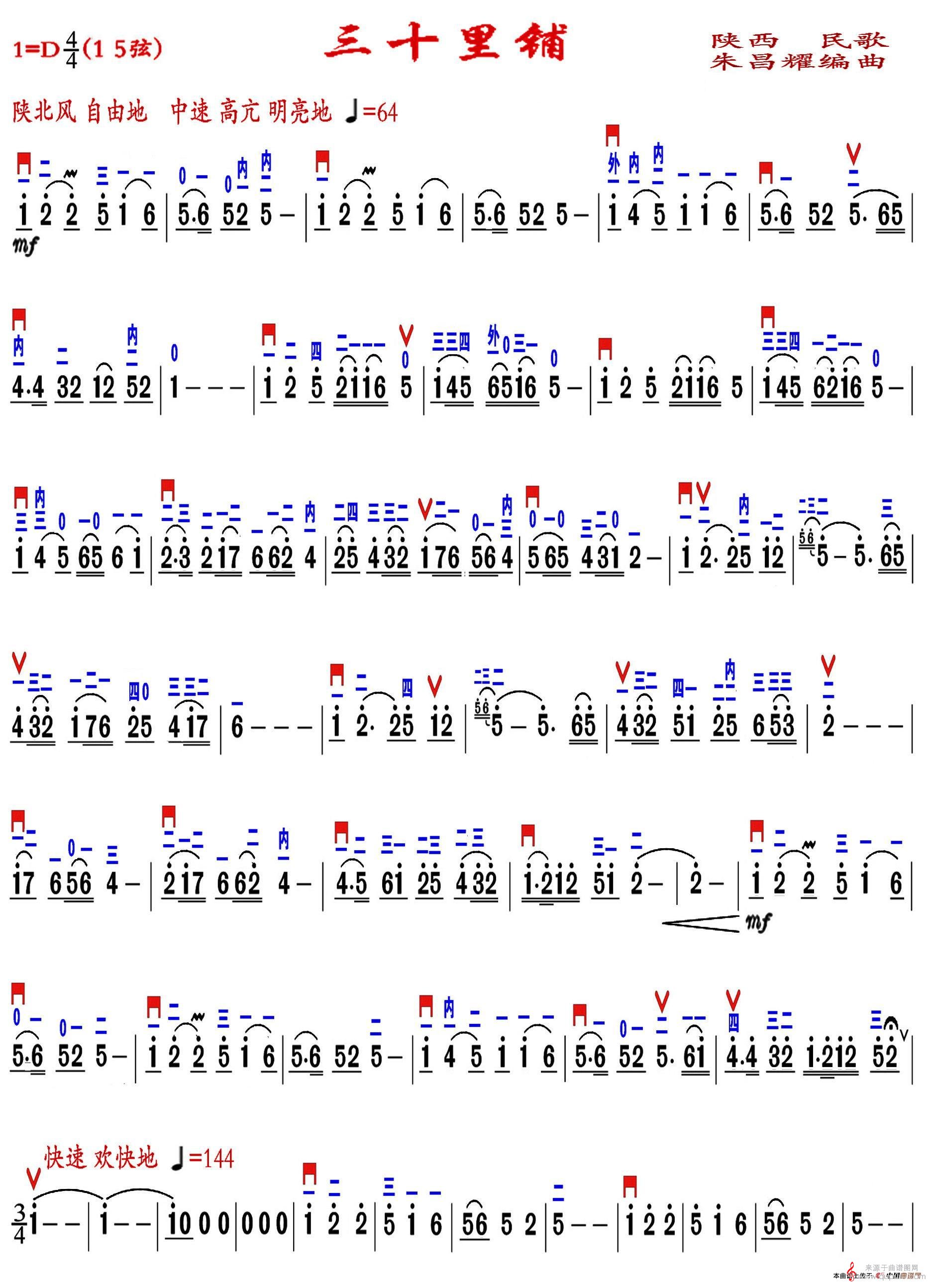 曲谱图网为您提供三十里铺民歌简谱(三十里铺精益制谱版 二胡独奏D调曲谱)找谱子,就上曲谱图网。