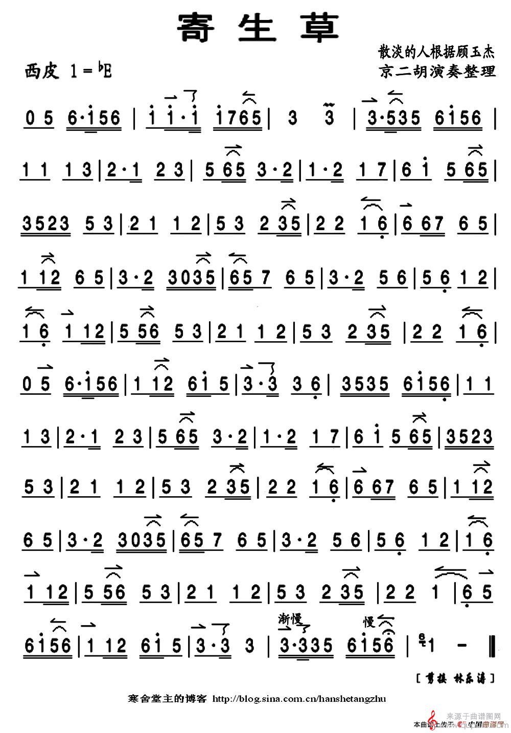 曲谱图网为您提供寄生草简谱(寄生草京二胡演奏曲谱)找谱子,就上曲谱图网。