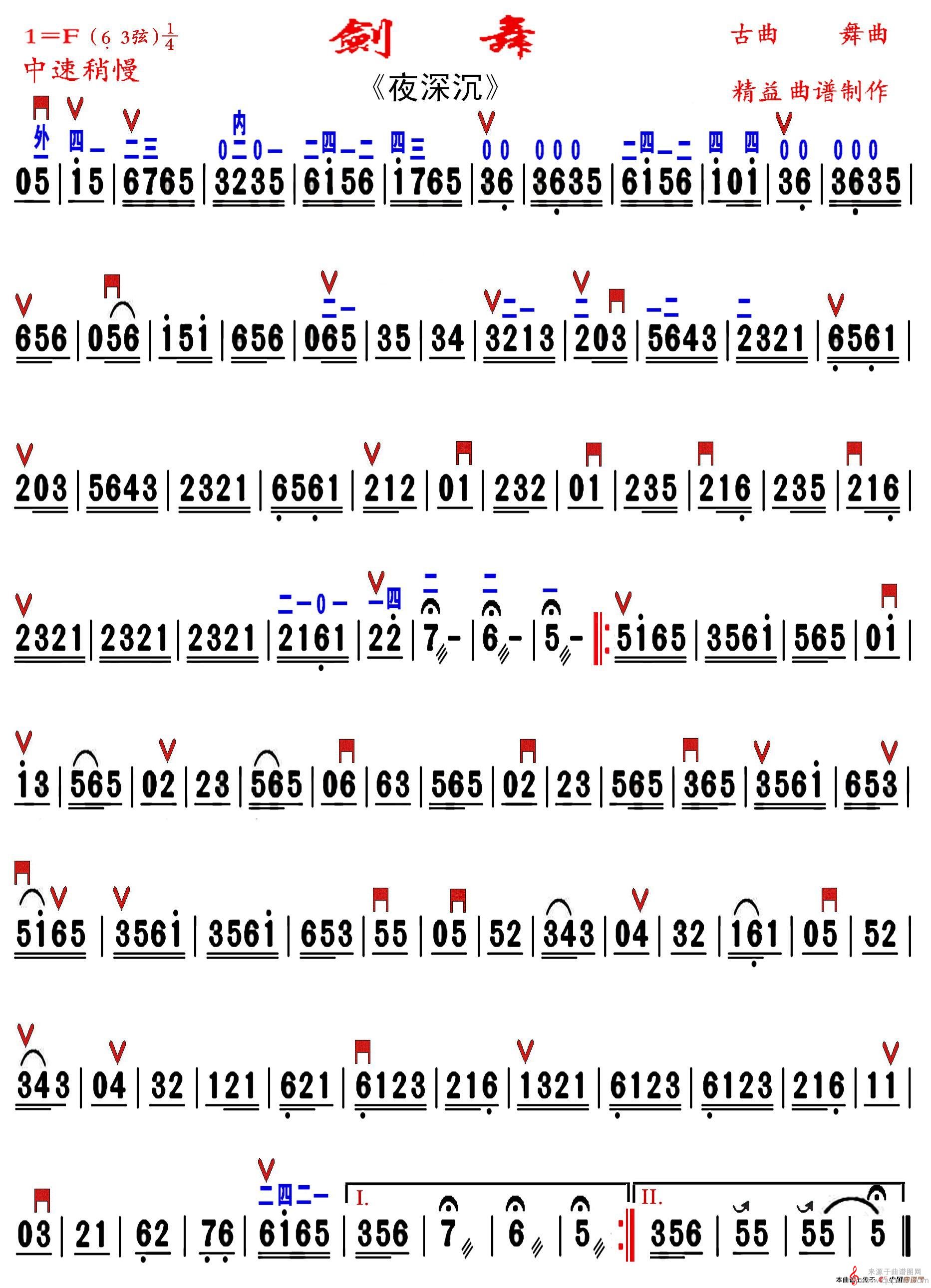 剑舞简谱(夜深沉 精益制谱版 二胡演奏简谱)