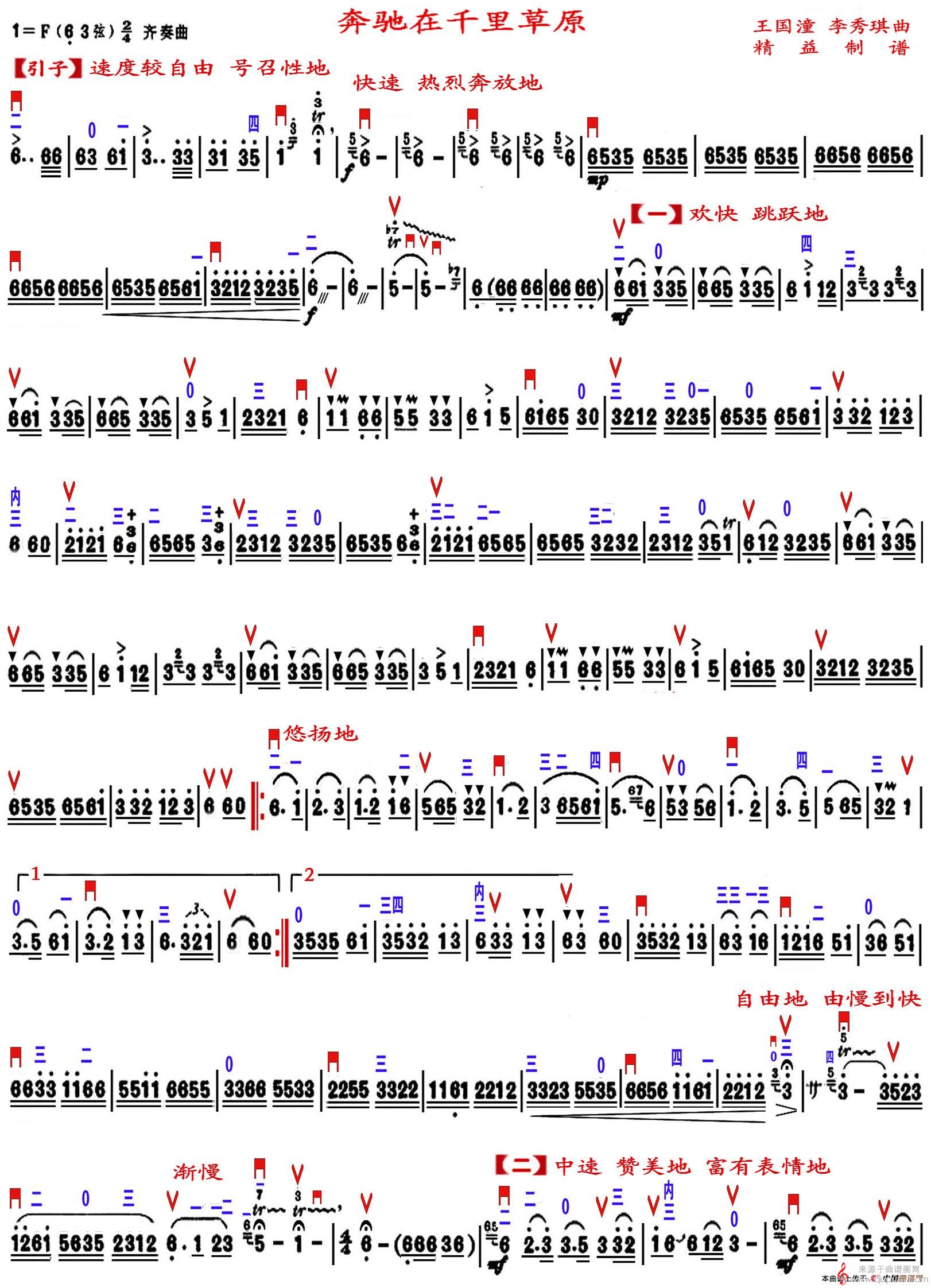 奔驰在千里草原简谱(奔驰在千里草原 精益制谱版 胡琴独奏简谱)
