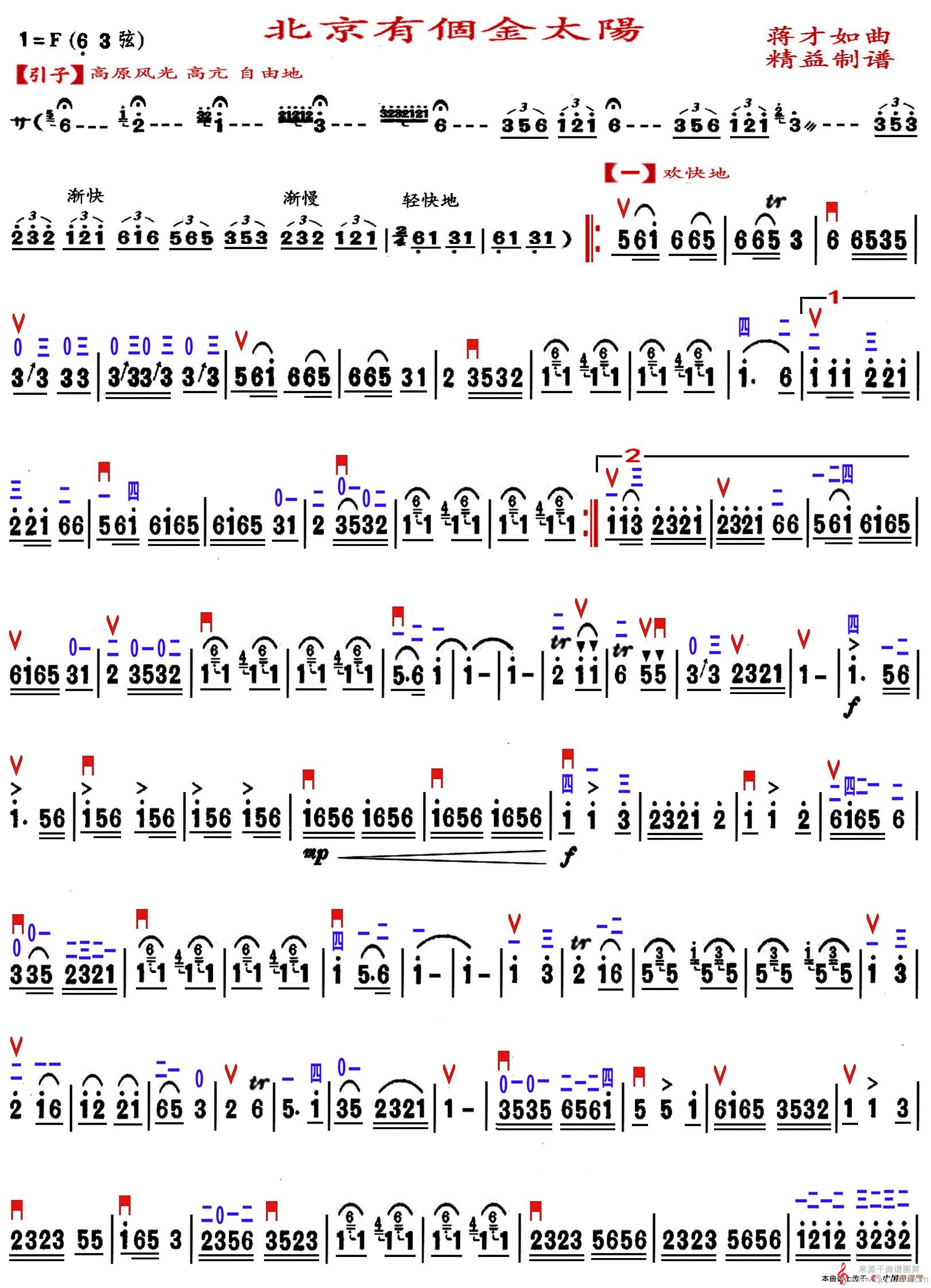 曲谱图网为您提供北京有个金太阳曲谱(北京有个金太阳 精益制谱版 二胡独奏简谱)找谱子,就上曲谱图网。