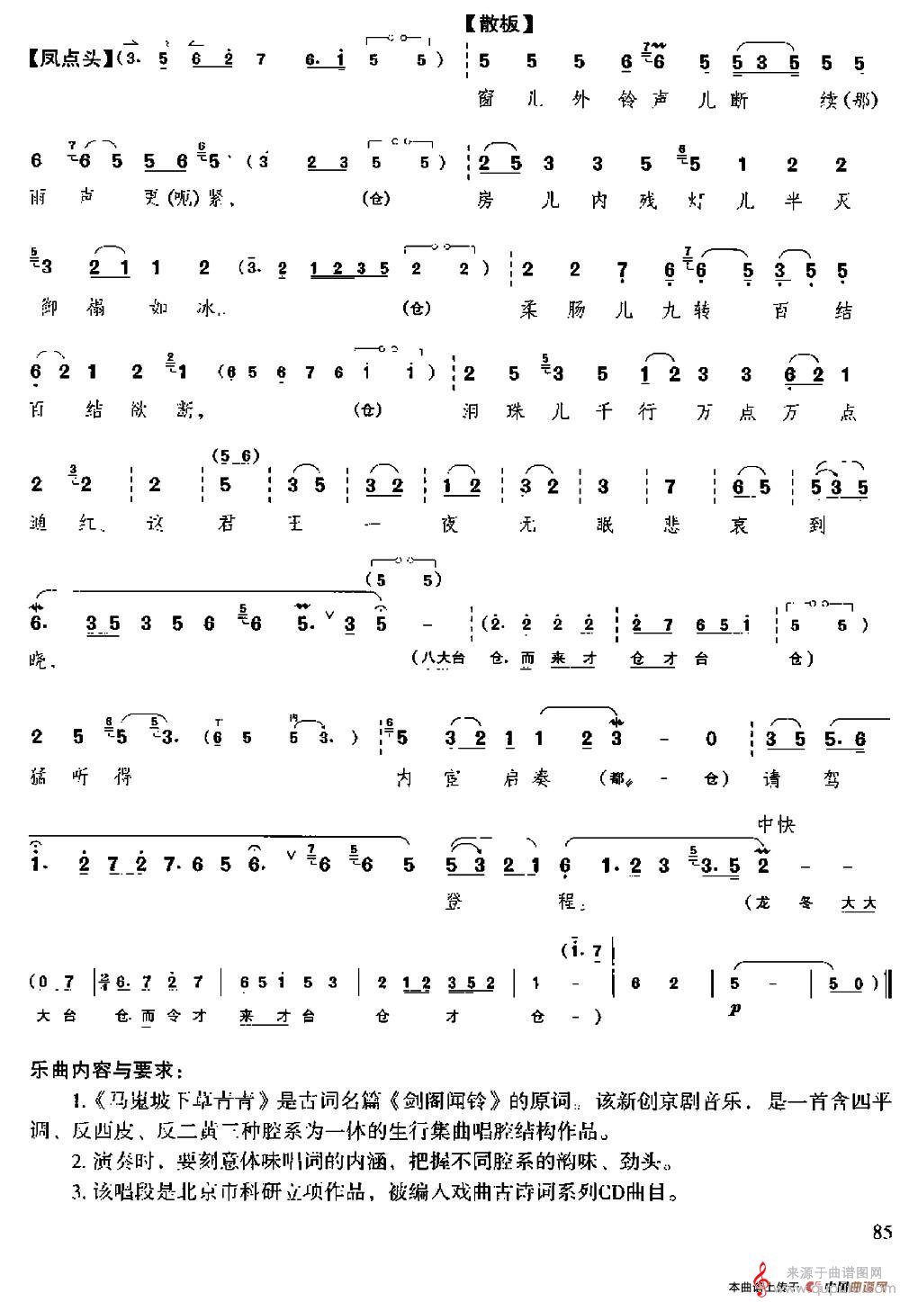 马嵬坡下草青青简谱(马嵬坡下草青青京胡伴奏+唱腔简谱)