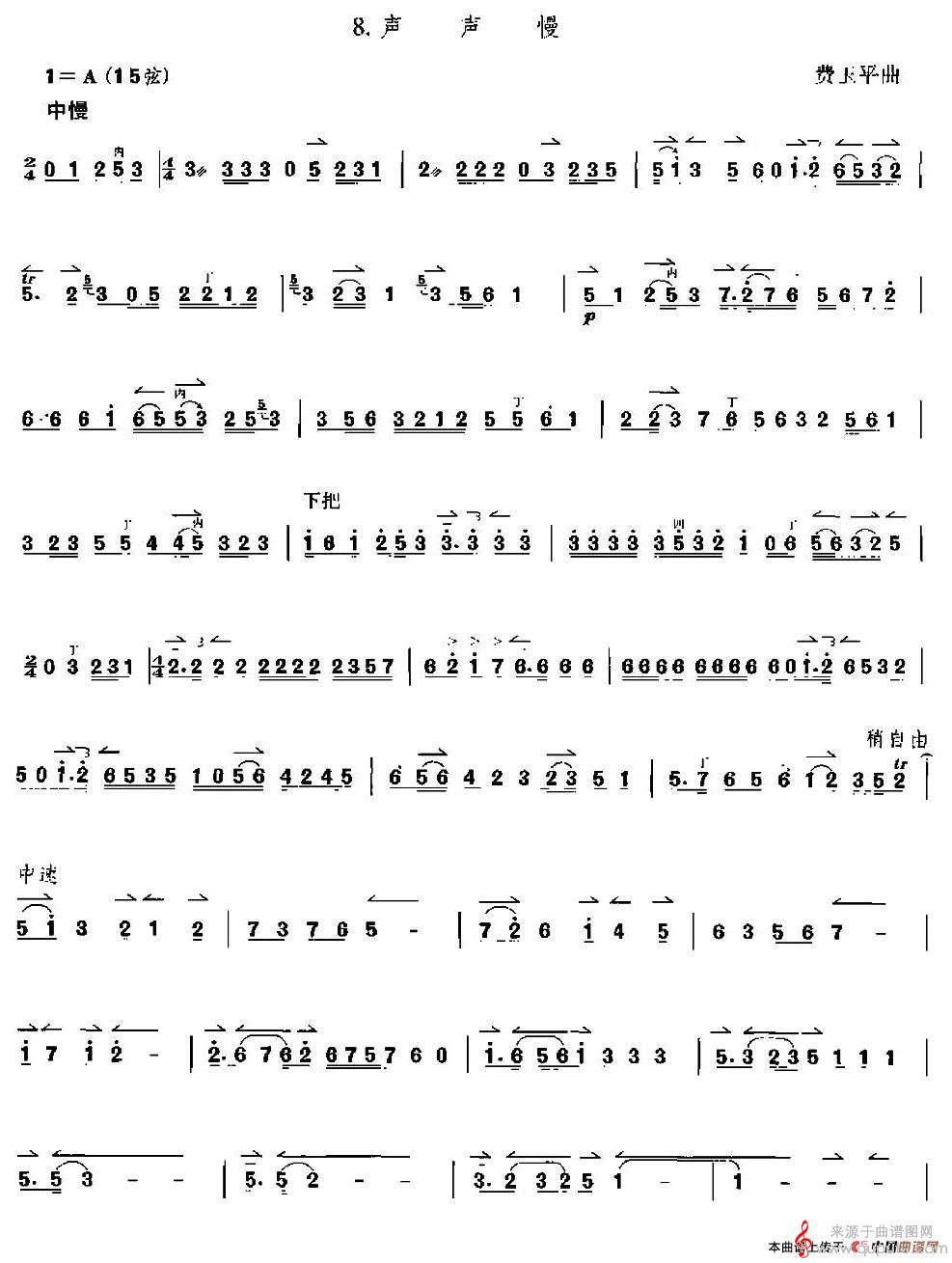 曲谱图网为您提供声声慢歌曲简谱(声声慢胡琴演奏简谱)找谱子,就上曲谱图网。