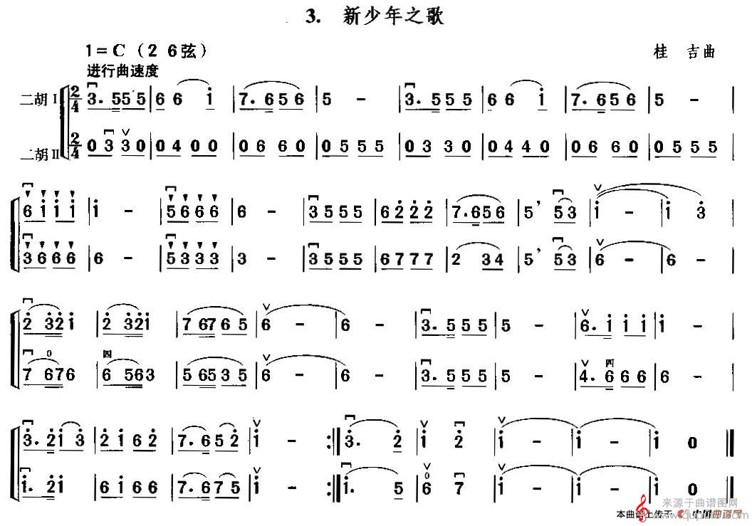 曲谱图网为您提供新少年之歌歌曲简谱(新少年之歌二胡二重奏简谱)找谱子,就上曲谱图网。
