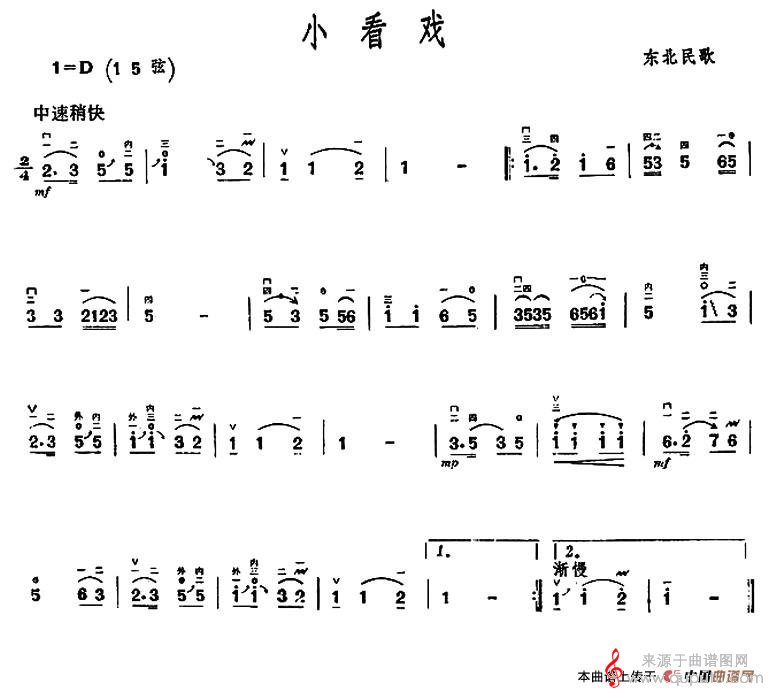 曲谱图网为您提供小看戏(小看戏竹笛二胡独奏歌曲完整简谱)找谱子,就上曲谱图网。