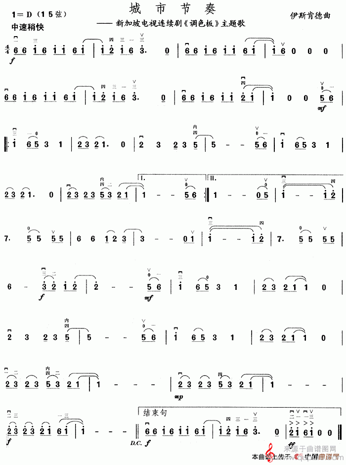 曲谱图网为您提供城市节奏(城市节奏胡琴乐曲谱)找谱子,就上曲谱图网。