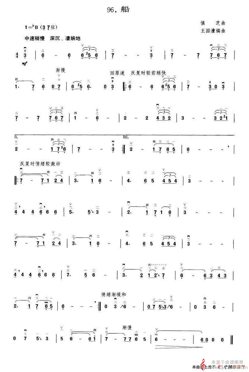 曲谱图网为您提供船(船二胡独奏歌曲简谱)找谱子,就上曲谱图网。