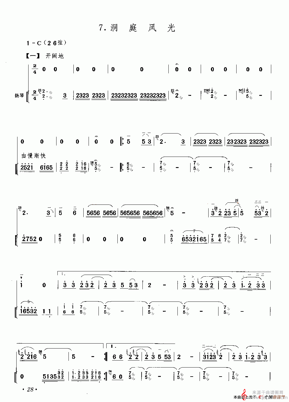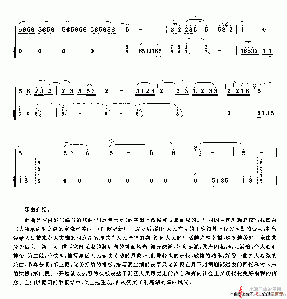 曲谱图网为您提供洞庭风光(洞庭风光二胡独奏+扬琴伴奏简谱)找谱子,就上曲谱图网。