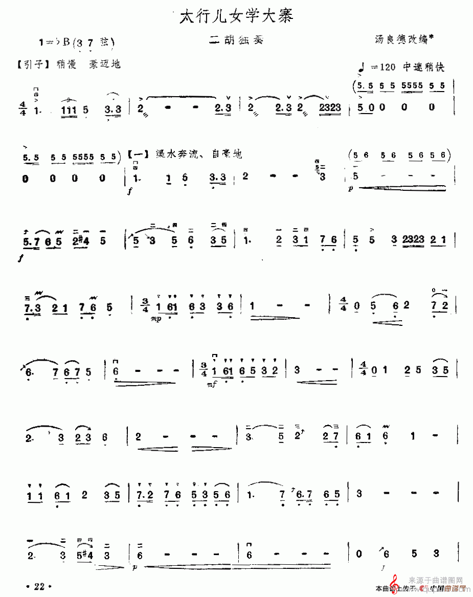 曲谱图网为您提供太行儿女学大寨(太行儿女学大寨二胡独奏曲曲谱)找谱子,就上曲谱图网。