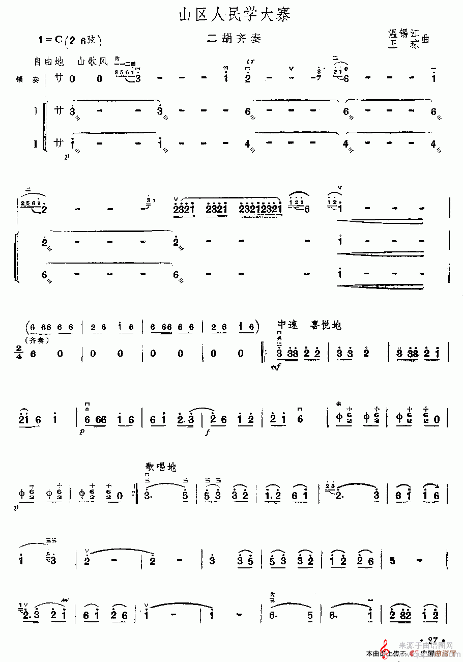 曲谱图网为您提供山区人民学大寨(山区人民学大寨二胡齐奏完整歌曲版)找谱子,就上曲谱图网。