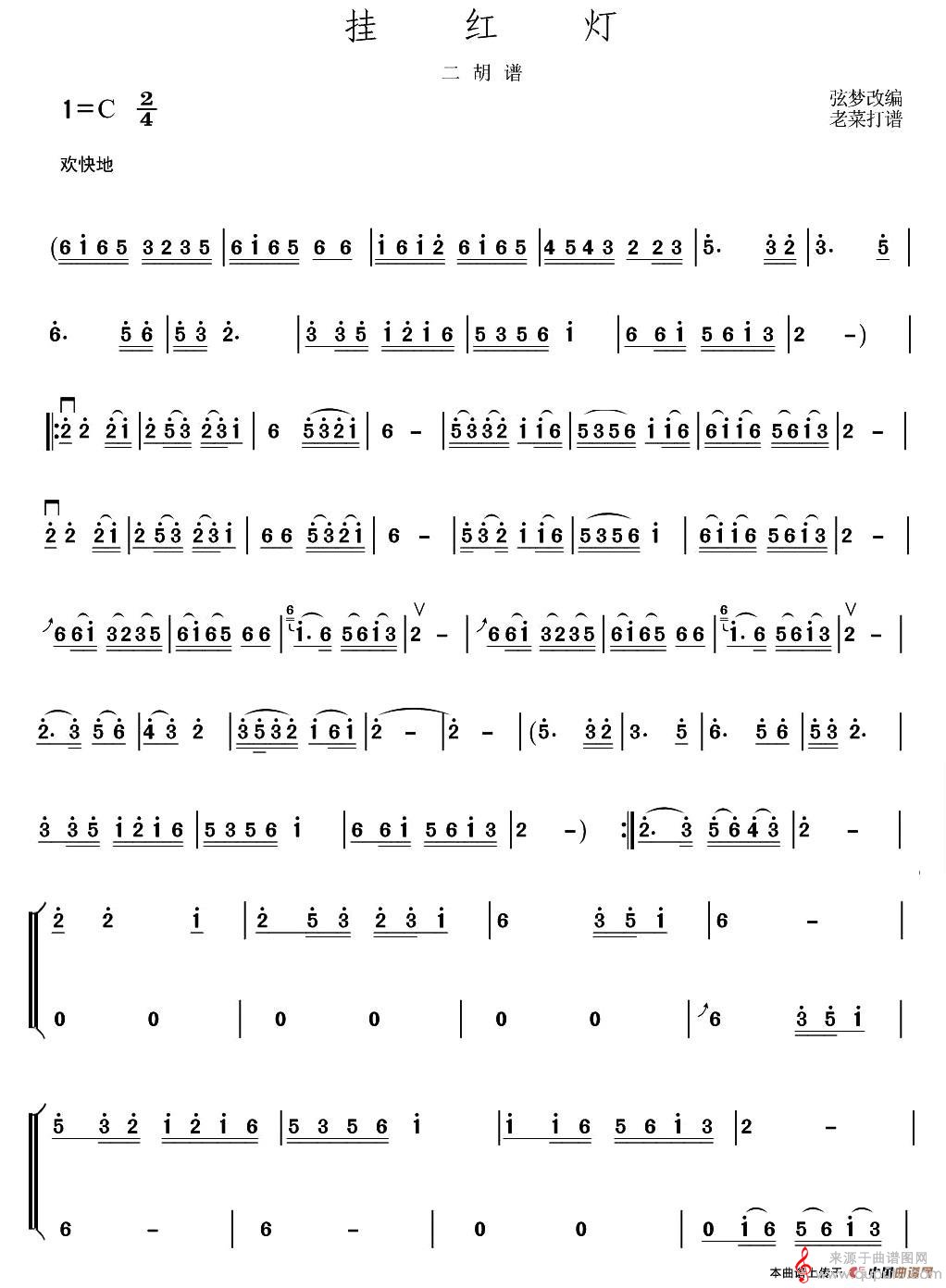 曲谱图网为您提供挂红灯(挂红灯二胡演奏曲谱)找谱子,就上曲谱图网。