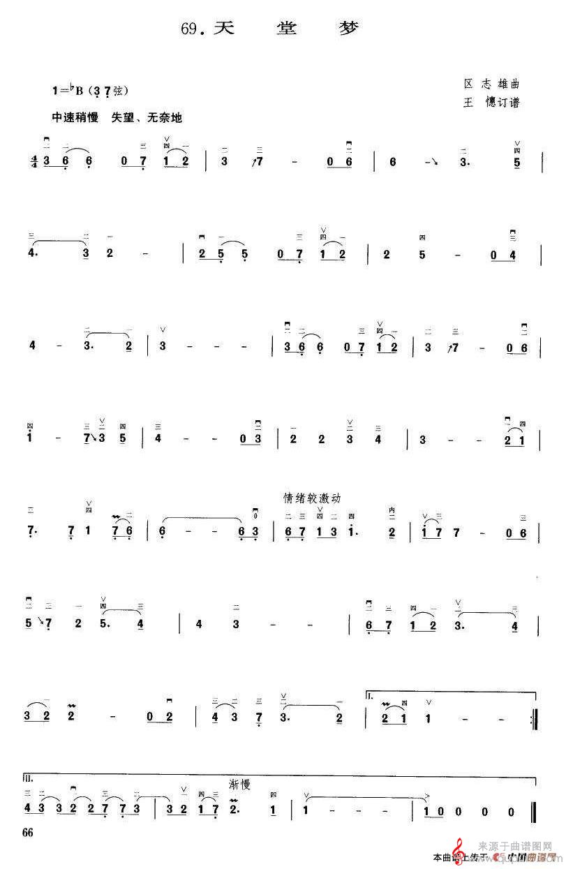 曲谱图网为您提供天堂梦简谱(天堂梦二胡独奏版)找谱子,就上曲谱图网。