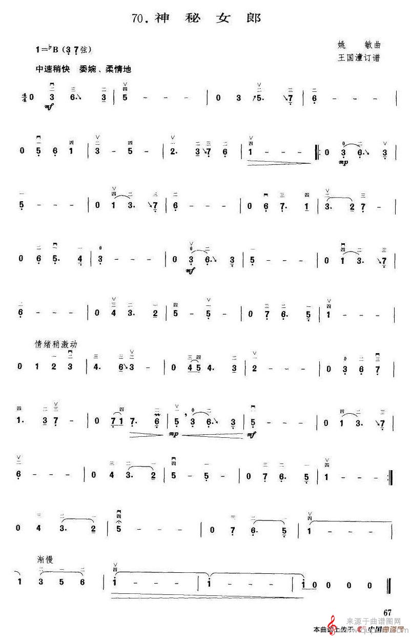 曲谱图网为您提供神秘女郎(神秘女郎萨克斯二胡演奏简谱)找谱子,就上曲谱图网。