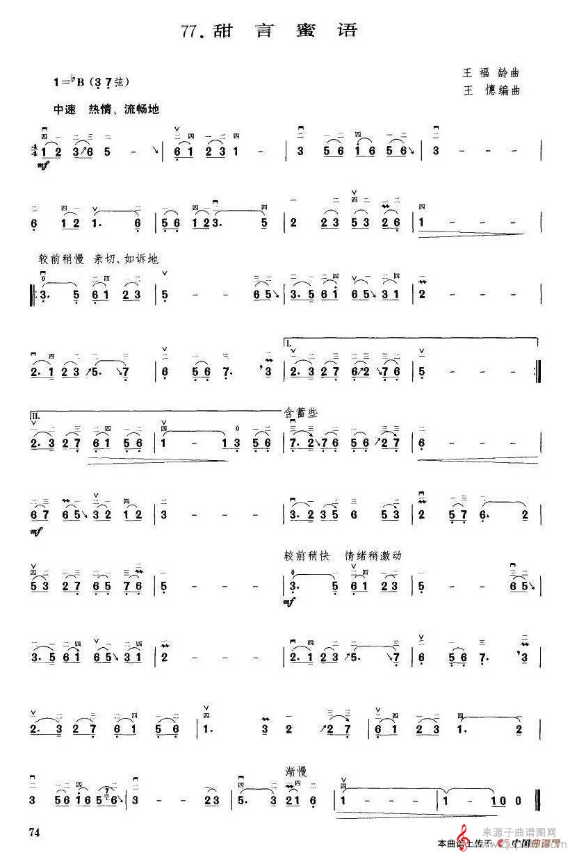 曲谱图网为您提供甜言蜜语(甜言蜜语萨克斯电子琴二胡演奏版)找谱子,就上曲谱图网。