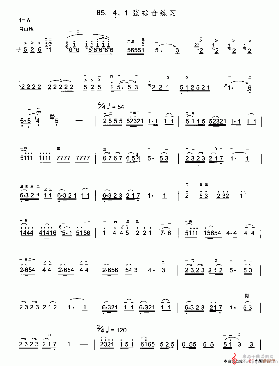 曲谱图网为您提供4、1弦综合练习曲简谱(4、1弦综合练习曲示范曲)找谱子,就上曲谱图网。