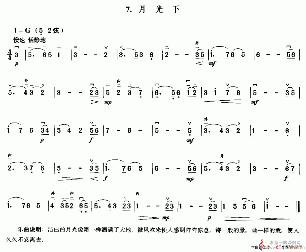 曲谱图网为您提供月光下简谱(月光下二胡独奏版)找谱子,就上曲谱图网。