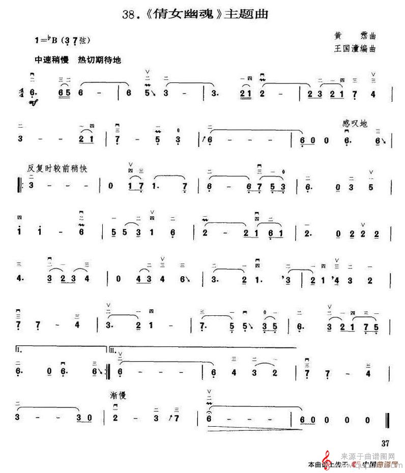 曲谱图网为您提供倩女幽魂(倩女幽魂二胡独奏或伴奏版)找谱子,就上曲谱图网。